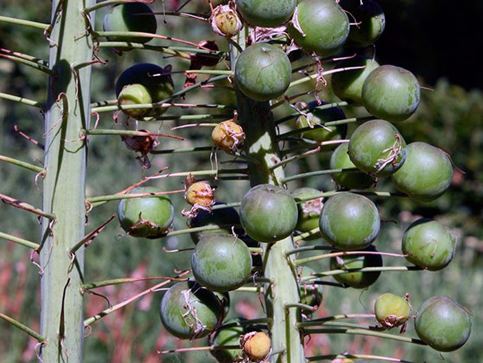 dobre nasiona można zbierać tylko z dolnej części kwiatostanu-świecy. W związku z tym zaleca się wybranie kwiatostanów 2 i skrócenie ich od góry o 1/3 części. Podczas dojrzewania owoce zmieniają kolor na Beżowy. Zbiór nasion należy rozpocząć w drugiej połowie sierpnia. Kwiatostan przycięty sekatorem należy umieścić do dojrzewania w dobrze wentylowanym i suchym pomieszczeniu. W ostatnich dniach października dobrze wysuszone pudełka należy pocierać rękami nad arkuszem gazety, na którym wylewa się nasiona. Są przedmuchiwane i wysiewane.