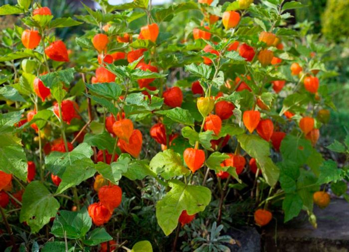 - alkekengi . Pudełka tego gatunku są pomalowane na czerwono, pomarańczowo lub żółto.