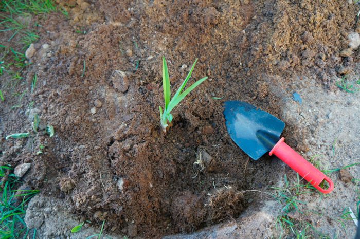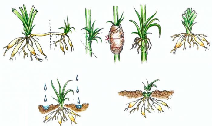 przed przystąpieniem do sadzenia zakupionego w sklepie materiału do sadzenia należy go zanurzyć w wodzie lub w nawozie mineralnym, który musi być silnie rozcieńczony przez kilka godzin. Z tego powodu korzenie puchną i ożywiają się, w którym to przypadku możesz łatwo wybrać niezdrowe korzenie i ostrożnie je usunąć. Pozostałe korzenie należy skrócić do długości od 20 do 30 centymetrów.