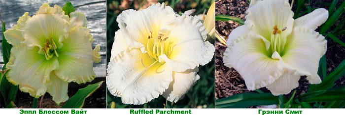 wśród wielu odmian i form liliowców istnieją takie, które można tradycyjnie nazwać białymi. Na przykład: