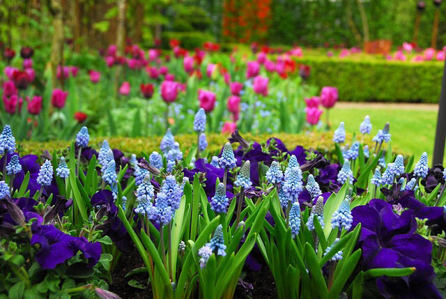 te kwiaty są dość popularne w ogrodnictwie. Wyglądają bardzo dobrze w ozdobnych wazonach i ogrodach skalnych, a niewymiarowe odmiany są używane jako krawężniki. Muscari wyglądają również bardzo imponująco w wielopoziomowych klombach, w kompozycji z innymi roślinami kwitnącymi wiosną. Tak więc, na tle gęstego sadzenia Muscari niebiesko-fioletowego koloru, Wyspy wczesnych kwitnących żonkili i tulipanów, które są nieco wyższe, wyglądają niesamowicie pięknie. Również pomarańczowe cietrzew po prostu świetnie wyglądają obok niebieskich Muscari.