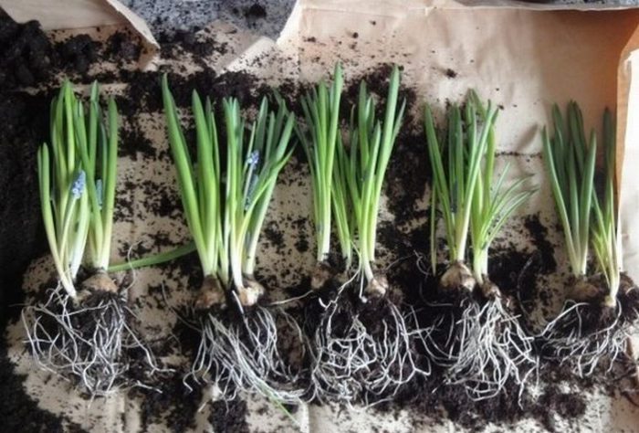 - po tym, jak liście Muscari zaczną wysychać, musisz zacząć kopać żarówki.