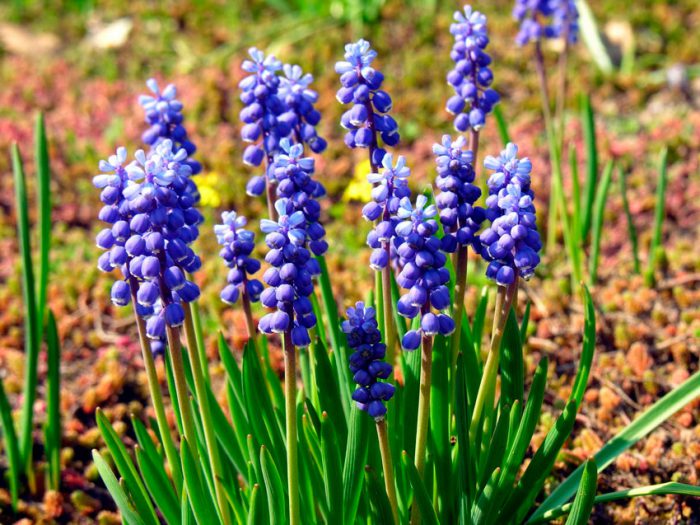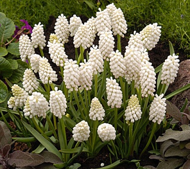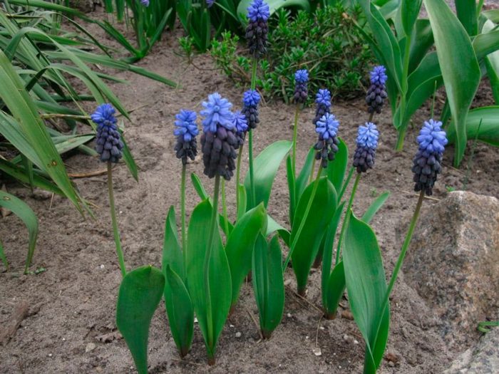 zaleca się lądowanie jesienią do ostatnich dni października. Najlepiej sadzić rośliny w grupach, należy zauważyć, że można sadzić tylko te krzewy Muscari, które były uprawiane w tym samym miejscu przez 5 lat lub dłużej. Kupując materiał do sadzenia w specjalistycznym sklepie, Należy zwrócić szczególną uwagę na stan pędów. Nie powinny mieć oznak chorób. W kwietniu czasami w szkółkach można zobaczyć sadzonki Muscari, które już kwitną w pełnym rozkwicie, a sprzedawcy zapewniają, że rośliny te można natychmiast przesadzić do stałego miejsca. Możesz spróbować postępować zgodnie z ich radą.