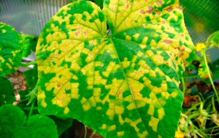płytki liściowe zaczynają żółknąć w zainfekowanym krzaku, stopniowo wysychają i opadają. Występuje również krzywizna szypułek i deformacja kwiatów, podczas gdy obserwuje się zmianę ich koloru.