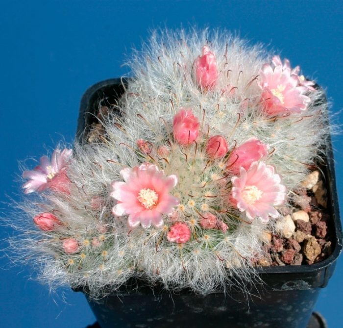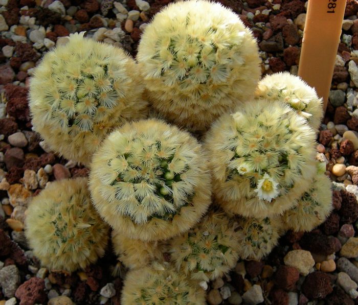 ten gatunek jest jednym z najpopularniejszych i pięknie rośnie w warunkach pokojowych. Niezbyt duża łodyga osiąga wysokość około 50 milimetrów. Ma niezwykły kulisty kształt, a jego powierzchnię pokrywają brązowe lub białe włosy. Dorosły krzew osiąga szerokość około 15 cm podczas kwitnienia na roślinie tworzą się różowe lub białe kwiaty. Gatunek ten jest bardzo odporny na niekorzystne warunki pogodowe, a jeśli jest odpowiednio pielęgnowany, nie zaszkodzi nawet niezbyt dużym mrozom.
