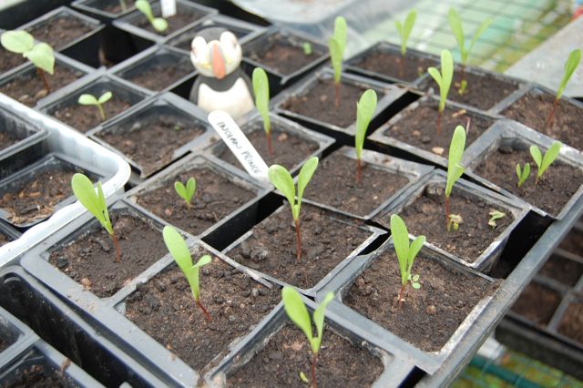 po pojawieniu się sadzonek (zwykle dzieje się to po 6-8 dniach) schronienie należy usunąć i przenieść pojemniki do miejsca o niższej temperaturze (od 14 do 15 stopni). Takie rośliny wymagają terminowego podlewania i górnego opatrunku raz na pół miesiąca lub dekadę, podczas gdy stosuje się słaby roztwór złożonego nawozu mineralnego. Kiedy kilka prawdziwych liści pojawi się na paznokciach, będą musiały być sadzone w indywidualnych pojemnikach lub w większym pojemniku, zachowując odległość między roślinami 5 centymetrów.
