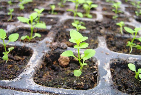 wysiew sadzonek należy wykonać w ostatnich dniach marca lub w pierwszych dniach kwietnia. Najpierw na dnie pojemników należy położyć warstwę drenażową i wypełnić je luźną glebą nasyconą składnikami odżywczymi. Dla wygody zaleca się łączenie małych nasion z piaskiem. Następnie są one rozprowadzane na powierzchni podłoża, a na wierzchu posypane cienką warstwą gleby. Pojemnik należy przykryć przezroczystą folią. Codziennie konieczne jest usunięcie folii ze zbiornika na chwilę, aby przewietrzyć i podlać uprawy. Po około 1,5 tygodniu będzie można zobaczyć pierwsze sadzonki. Gdy to nastąpi, musisz usunąć schronienie na dobre. Zbieranie odbywa się po pojawieniu się pary prawdziwych liści w roślinach. Sadzonki ostrożnie wykopują, ostrożnie usuwają glebę, przycinają nadmiernie długie korzenie. W 1 doniczce sadzi się 3 sadzonki.