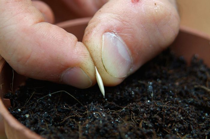 wysiew nasion jesienią można wykonać bezpośrednio na otwartym terenie. Można je również wysiewać na sadzonki w lutym lub marcu, ale należy zauważyć, że takie uprawy będą wymagały rozwarstwienia. Tak więc nasiona są rozprowadzane na powierzchni podłoża, po czym pojemnik umieszcza się w torbie z polietylenu. Następnie ten pojemnik jest czyszczony na półce lodówki na 4-6 tygodni. Następnie pojemnik z nasionami jest usuwany i umieszczany w cieple pod sztucznym oświetleniem. Optymalna temperatura dla pojawienia się sadzonek wynosi od 18 do 22 stopni. Po pojawieniu się 2 lub 3 prawdziwych liści w roślinach należy je zebrać.