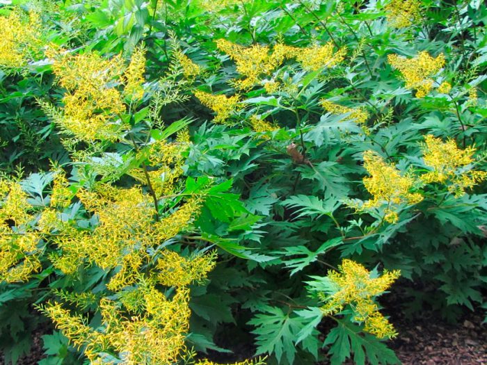 taka roślina jest mało wymagająca i bezpretensjonalna. Często służy do dekoracji tych obszarów ogrodu, które nie wyglądają bardzo pięknie. Krzew osiąga wysokość 150 centymetrów, ma kwiatostany w kształcie kolca i chropowate płytki liściowe (podobne do klonu). Taki kwiat, pomimo monumentalności, wygląda bardzo elegancko. Kwitnienie rozpoczyna się w ostatnich dniach lipca.