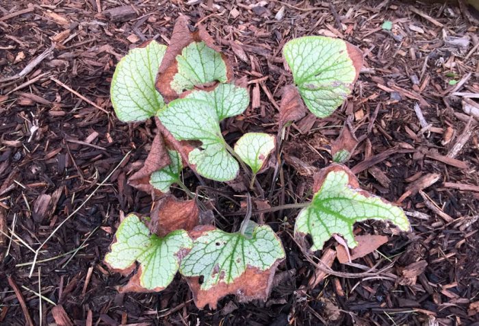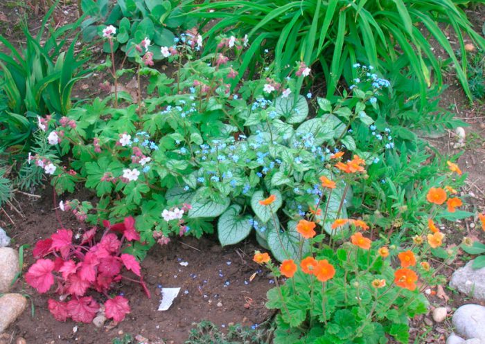 zasady opieki nad Brunnerem syberyjskim i Brunnerem wielkokwiatowym różnią się. Brunner o dużych liściach zachowuje atrakcyjny wygląd przez cały sezon wegetacyjny, a jeśli wybierzesz odpowiednie miejsce podczas sadzenia (zacienione wilgotną glebą), możesz o nim zapomnieć przed nadejściem jesieni. Wszystko, czego potrzebuje ten gatunek, to systematyczne pielenie, które należy koniecznie przeprowadzić, ale należy zauważyć, że nie można poluzować gleby, ponieważ system korzeniowy rośliny znajduje się bardzo blisko powierzchni gleby.