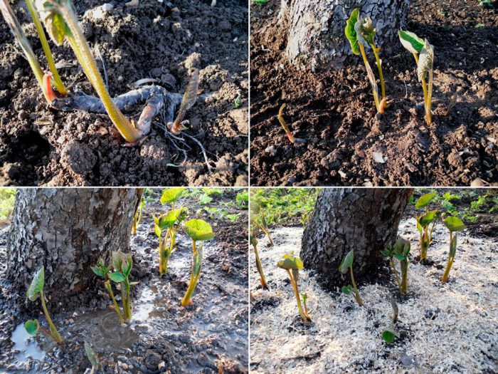 po posadzeniu roślin powierzchnia gleby jest posypana warstwą ściółki (wapień, trociny, kora drzewna, popiół drzewny lub fusy z Kawy).