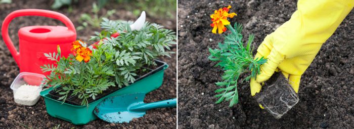 sadzenie sadzonek na otwartej glebie odbywa się dopiero po tym, jak nie będzie zagrożenia mrozem. Pamiętaj, że nagietki boją się mrozu. Należy również pamiętać, że sadzone nagietki powinny mieć 3 prawdziwe liście, a także potężny system korzeniowy. Z reguły lądowanie odbywa się w ostatnich dniach maja, pierwsze — czerwca. Do sadzenia należy wybrać miejsce z glebą bogatą w składniki odżywcze, gliniastą, neutralną, która jest dobrze nawilżona od początku do połowy lata. W przypadku, gdy gleba jest niepłodna, rośliny w okresie aktywnego wzrostu będą musiały być karmione 2 lub 3 razy.