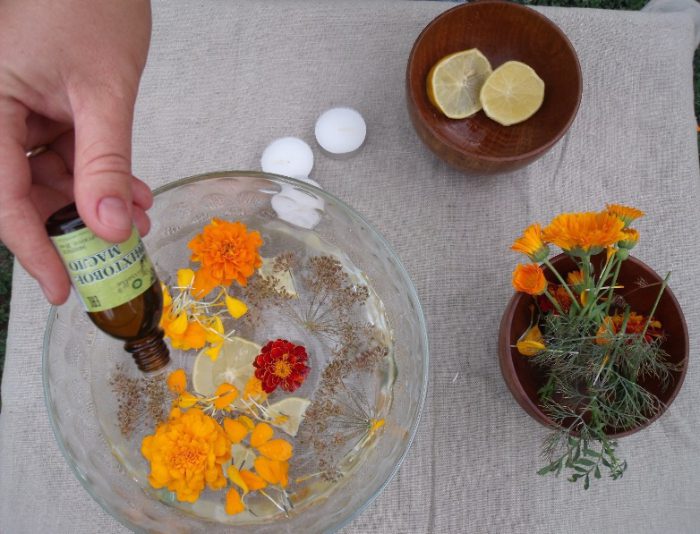 - narzędzie do pocenia się, podrażnienia lub zapalenia naskórka twarzy. weź kilka dużych łyżek zmiażdżonych kwiatostanów nagietka i wymieszaj je z 300 g gorącej wody. Pozwól mieszaninie zagotować się, przykryj i nalegaj na około 3-4 godziny. pocierać wywar, jednocześnie wyciskając kwiaty. Dodaj kilka dużych łyżek wody i sok wyciśnięty z dużego liścia aloesu. Do przechowywania produkt należy umieścić na półce lodówki. Miejsca zapalne muszą być leczone 2 razy dziennie.