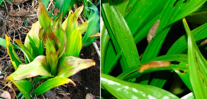 ślimaki, a także ślimaki, mogą osiedlić się na takim kwiacie. Takie szkodniki żywią się liśćmi. Jeśli gleba jest prawie stale podmokła, może to spowodować rozwój szarej zgnilizny. Aby uniknąć pojawienia się ślimaków, powierzchnia między rzędami musi być pokryta warstwą zmiażdżonych muszli, drobnego żwiru lub skorupy jaj. A na obwodzie witryny można umieścić rynny z tworzywa sztucznego, do których należy wlać wodę. Staną się przeszkodą nie do pokonania dla ślimaków i ślimaków.