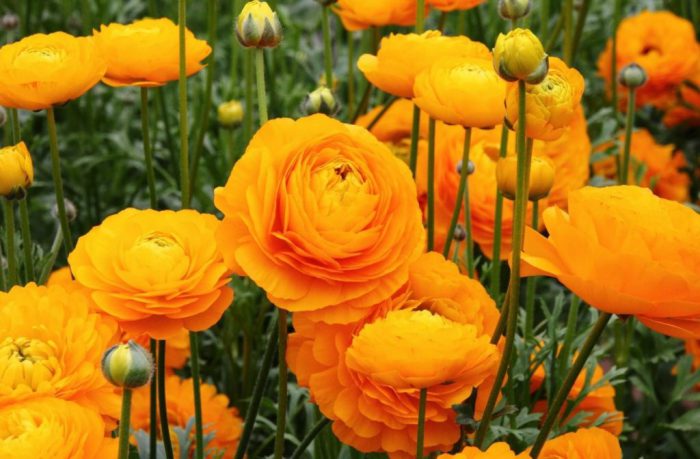 Ranunculus (Ranunculus) jest również nazywany jaskierem ogrodowym (azjatyckim). Ojczyzną takiej rośliny należącej do rodziny jaskierów jest Azja Mniejsza. Nazwy tych kwiatów nadał Naukowiec Pliniusz, który żył w czasach starożytnych. Z łaciny Ranunculus tłumaczy się jako "żaba", faktem jest, że większość gatunków takich kwiatów woli rosnąć w bagnistych miejscach. W XVI wieku roślina ta została sprowadzona z Turcji do Anglii i zyskała tam dużą popularność wśród hodowców kwiatów. Jednak od końca 19 wieku stracił swoją dawną popularność, ale obecnie te kwiaty są coraz bardziej poszukiwane każdego roku. Obecnie taki rodzaj łączy ponad 600 różnych gatunków Ranunculus. Jeśli odetniesz kwiat takiej rośliny i umieścisz go w wazonie, zachowa świeżość przez cały półksiężyc. Włosi nazywają jaskier ogrodowy "złotymi guzikami łąk". Istnieje znana legenda, że Jezus zamienił małe gwiazdki w jaskry i podarował je swojej matce jako znak miłości i szacunku…