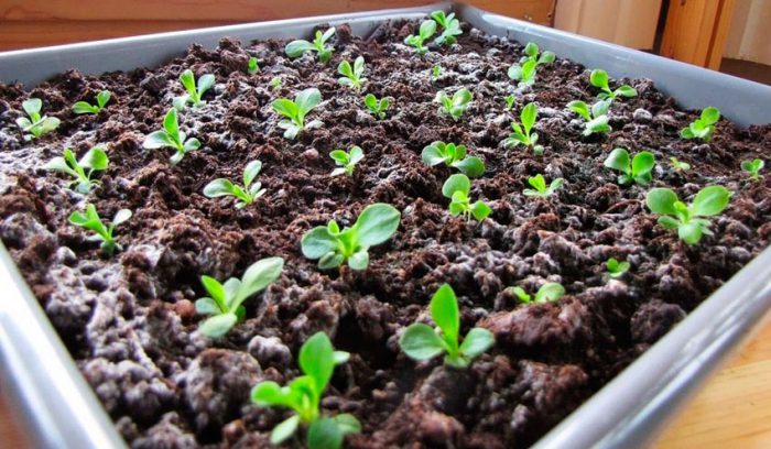 nasiona tracą kiełkowanie po bardzo krótkim czasie, więc muszą być wysiewane bezpośrednio po zbiorze. Aby to zrobić, użyj pudełek, które są instalowane w otwartej glebie. W przypadku, gdy masz wysokiej jakości nasiona i nie chcesz ryzykować, wysiew ich należy wykonać w pierwszych lutowych dniach. Aby to zrobić, pudełka należy wypełnić mieszanką składającą się z darni i ziemi liściastej, a także piasku (2:1:1). Nasiona należy rozłożyć na powierzchni i nie zakopać w glebie, ale tylko lekko wcisnąć. Upewnij się, że na 1 centymetrze kwadratowym nie ma więcej niż 5 nasion. Następnie pudełko należy umieścić w torbie z polietylenu i umieścić w zamrażarce, gdzie nie będzie cieplejsze niż minus 10 stopni. Tam powinny pozostać od 3 do 4 tygodni. Następnie pudełka bezpośrednio w paczkach są umieszczane na parapecie, nie zapominając o ochronie ich przed bezpośrednimi promieniami słońca. Upewnij się, że ziemia jest lekko nawilżona przez cały czas. Najszybciej nasiona wykiełkują w temperaturze od 16 do 18 stopni. Warto jednak wziąć pod uwagę, że zamrożenie nie będzie potrzebne wszystkim gatunkom takich roślin. Tak więc drobnoziarnisty i zwykły Wiesiołek nie wymagają tej stratyfikacji. Pierwsze pędy zwykle nie pojawiają się wkrótce. Gdy to nastąpi, musisz zacząć powoli otwierać torby, w wyniku czego roślina stopniowo przyzwyczai się do powietrza. Pół miesiąca później schronienie można usunąć na dobre.