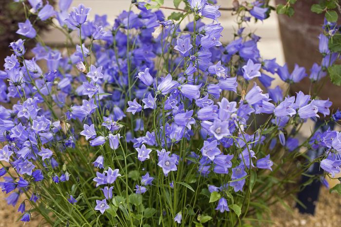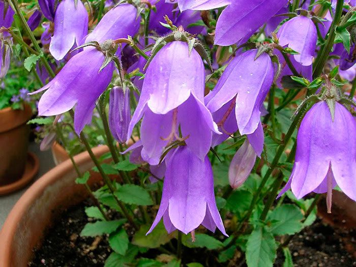 muszą być uprawiane dokładnie tak samo, jak inne kwiaty w ogrodzie. Dzwonki wyróżniają się bezpretensjonalnością. Podlewanie odbywa się tylko w przypadku długiego suchego i gorącego okresu. Poluzuj powierzchnię gleby i usuń chwast, zaleca się po podlewaniu. Jeśli to konieczne, wysokie odmiany można przywiązać do podpory. Pierwszy górny opatrunek przeprowadza się wiosną na roztopionym śniegu i używa do tego nawozu azotowego. Drugi raz jest karmiony w pierwszej połowie okresu letniego, kiedy pąki zaczynają się formować i do tego celu stosuje się złożony nawóz. Regularne usuwanie więdnących kwiatów wydłuży okres kwitnienia.