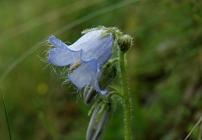 pochodzi z Subalpejskiego pasa Morza Śródziemnego. Wysokość krzewu waha się od 4 do 30 centymetrów. Opadające jasnoniebieskie kwiaty mają kształt dzwonu i kieliszka oraz długość trzech centymetrów. Kwitnienie obserwuje się od czerwca do lipca. Uprawiana od 1752 r.