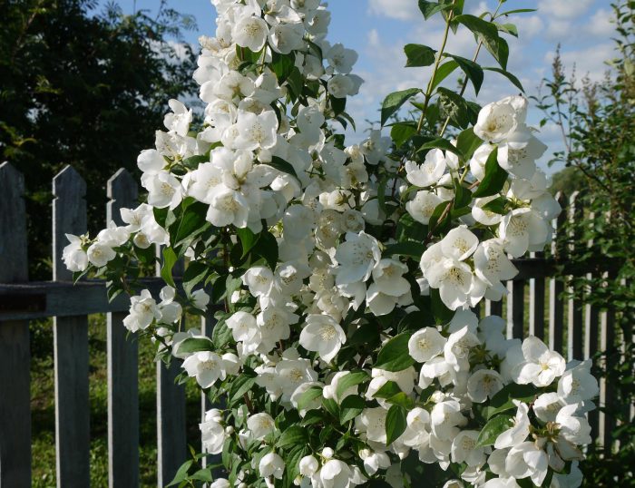- zaleca się sadzenie tego krzewu w bezpośrednim sąsiedztwie z kwiatami o fioletowym lub bogatym niebieskim odcieniu. Na przykład będzie świetnie wyglądać obok delphinium lub lawendy. Również jaśmin pięknie rośnie w sąsiedztwie hortensji lub spirei.