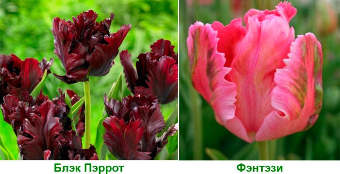 najbardziej egzotyczne. Płatki wzdłuż krawędzi są silnie cięte i podobne do skrzydła ptaka. Przy pełnym otwarciu średnica kwiatu wynosi czasami 20 centymetrów. Wysokość krzewu waha się od 40 do 65 centymetrów. Kolor od czerwono-Czarnego do białego. Odmiany: "Discovery", "Black Parrot", "Fantasy".