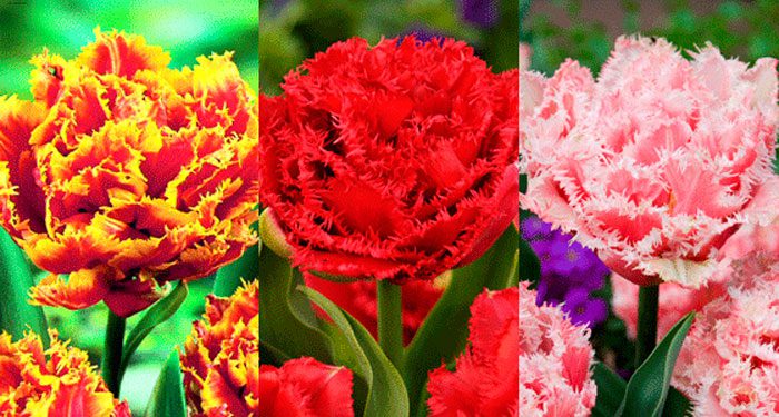 kwiaty są silnie frędzlami, o różnych kolorach. Krawędź płatków jest frędzlowana.