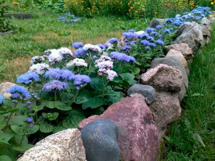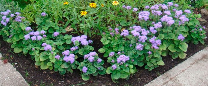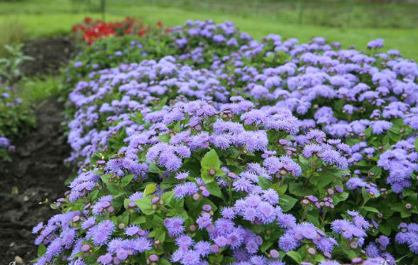 na średnich szerokościach geograficznych ageratum jest uprawiany jako roślina jednoroczna, ponieważ nie jest odporny na mróz. Taka roślina może ozdobić rabatkę, kwietnik, a także będzie świetnie wyglądać w kompozycjach dywanowych. Taki kwiat można sadzić razem z nagietkami, nagietkami, lwim gardłem, które są również roślinami jednorocznymi.