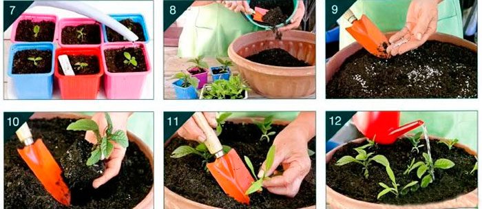 kiedy sadzonki wyrosną z 2 prawdziwych liści, będą musiały nurkować. Sadzi się je w oddzielnych doniczkach o średnicy dziewięciu centymetrów, wypełniając je tą samą mieszanką ziemi. Po przeszczepie sadzonki należy podlać. Pół miesiąca po nurkowaniu młode rośliny powinny być karmione. Aby to zrobić, użyj nawozu do sadzonek.