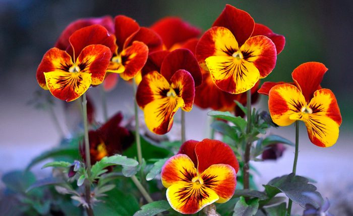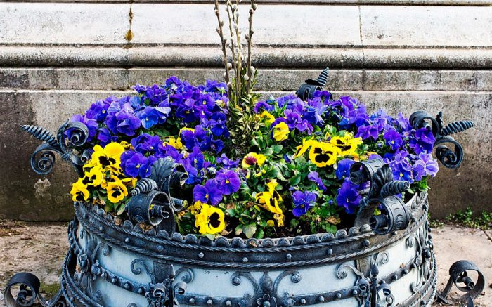 fiołek zaczyna kwitnąć bardzo wcześnie. Kolorowe dywany bratki wyglądają niesamowicie. Będą wyglądać bardzo dekoracyjnie, jeśli posadzisz pierwiosnki lub inne wiosenne kwiaty cebulowe obok nich.