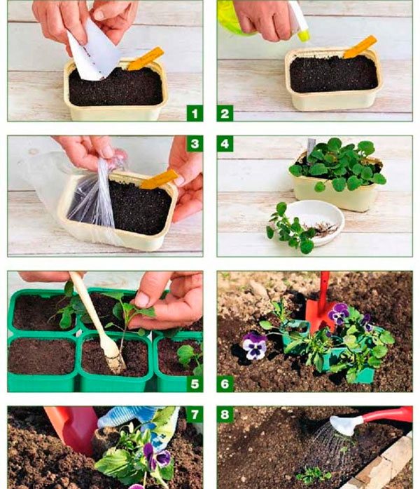 samosiew jest najłatwiejszym sposobem rozmnażania fiołków. Kiedy nasiona dojrzewają, są sadzone na osobistej działce. Jednocześnie zaczynają kiełkować późnym latem lub w pierwszych miesiącach jesieni. Aby urocze kwiaty zakwitły wcześniej, młode rośliny należy sadzić jesienią. Sadzonki najlepiej sadzić wczesną wiosną, aby fiołki miały silny system korzeniowy. Bratki dobrze dostosowują się do nowego miejsca. W takim przypadku kwiaty znajdujące się na krzakach fiołków nie powinny być odcinane.