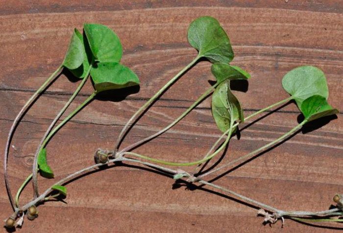 - Kwitnienie . Dichondra jest uprawiana jako ozdobna roślina liściasta.