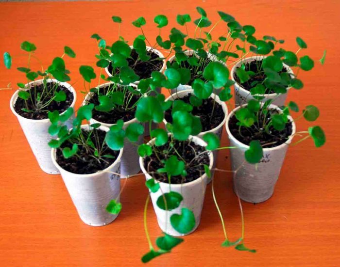 jeśli wszystko zostanie wykonane poprawnie, pierwsze sadzonki mogą pojawić się zaledwie 7 dni po siewie. Pojawiające się pędy charakteryzują się wyjątkowo powolnym wzrostem, więc schronienie ze zbiornika jest usuwane dopiero po ich wzmocnieniu.
