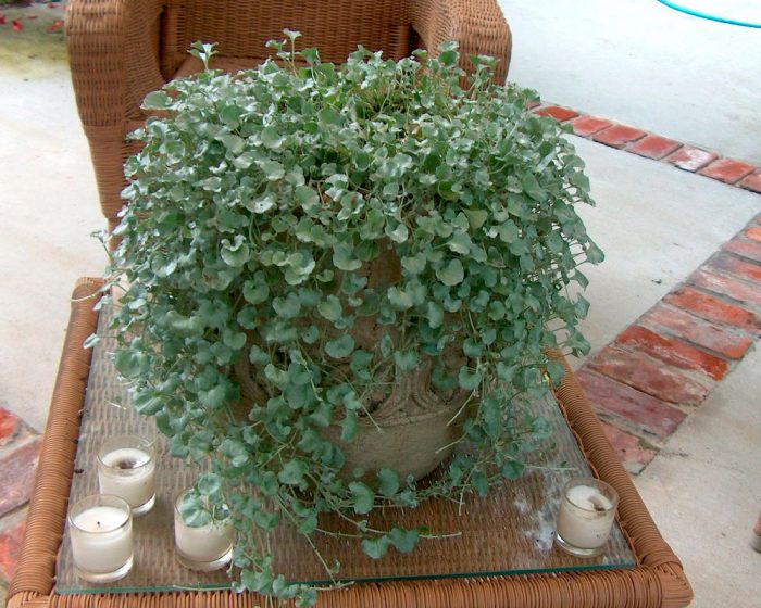uprawa dichondry w domu nie jest trudna, ale musisz pamiętać o jej cechach. Opiekują się nią prawie tak samo, jak innymi ampelowymi roślinami ozdobnymi i liściastymi, na przykład pełzającym figowcem, szparagami, zebriną, chlorophytum, ficus ukorzeniającym lub skalnikiem.