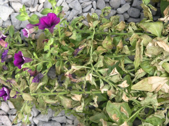 niepotrzebne wyblakłe krzewy petunii jesienią należy wykopać i spalić, a teren wykopać.