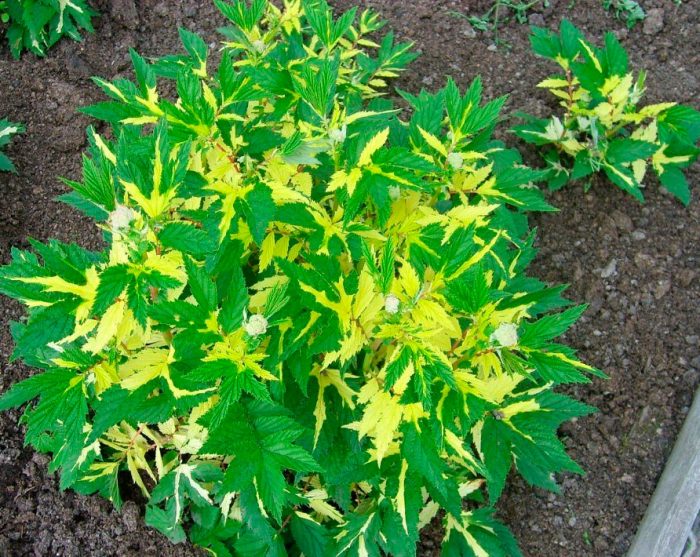 ta odmiana jest dobra, ponieważ ma nie tylko spektakularne kwiaty, ale także bardzo piękne liście. Krzew może osiągnąć wysokość od 0,7 do 0,8 metra, a średnicę-do pół metra. Liście palmowe są pomalowane na zielonkawy odcień i mają ząbkowaną krawędź. Ta odmiana różni się od reszty tym, że smugi i środek jej liści są pomalowane na purpurowy lub ciemnobrązowy odcień. Długie luźne kwiatostany wiechowate składają się z bardzo małych różowych kwiatów. Roślina kwitnie od lipca do września. Zachowuje jednak wysoką dekoracyjność przez cały sezon.