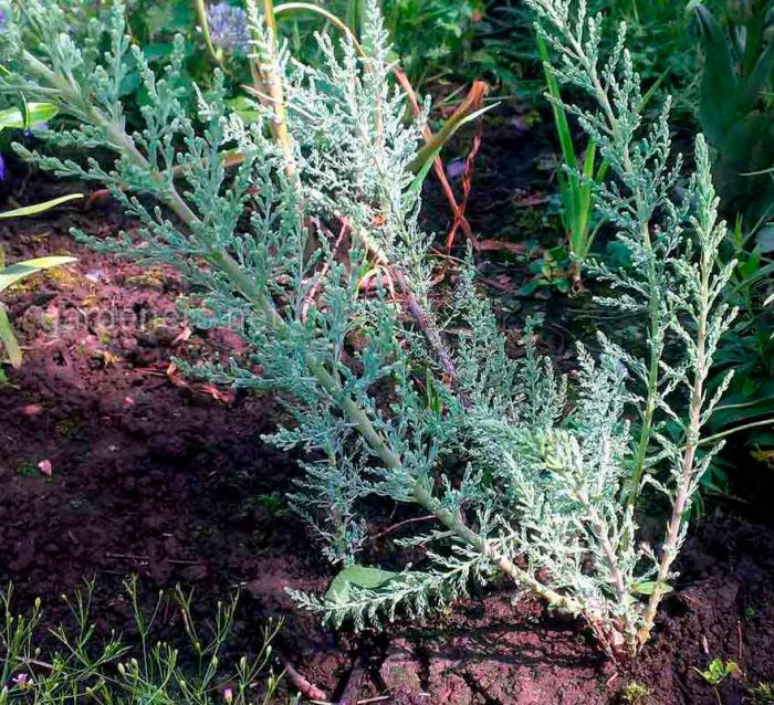 rozgałęzione pędy tego krzewu są pomalowane na brązowo-żółty lub jasnoczerwony odcień i ozdobione są bardzo małymi płytkami liściowymi, które są łuskami. W klimacie umiarkowanym wysokość niskich rozłożystych krzewów może osiągnąć 100-150 cm, jednak czasami występują Dzikie okazy, których wysokość wynosi około czterech metrów. Średnica krzewu może osiągnąć około półtora metra.