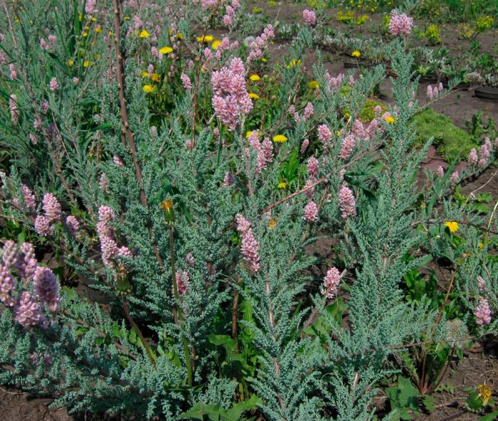 w naturze najczęściej występuje w Azji Środkowej, na Dalekim Wschodzie iw Europie Zachodniej. Boczne łodygi niskich krzewów są wznoszące się i proste. Są pokryte wieloma naprzemiennie rozmieszczonymi, łuskowatymi, mięsistymi płytkami liściowymi, które są pomalowane na niebiesko-srebrny odcień.