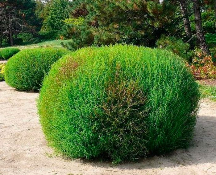 Wysokość TAK zwartej rośliny o kulistym kształcie wynosi około pół metra. Rozgałęzione łodygi pokrywają bujne zielonkawe liście. Jego kolor pozostaje niezmieniony przez cały rok.