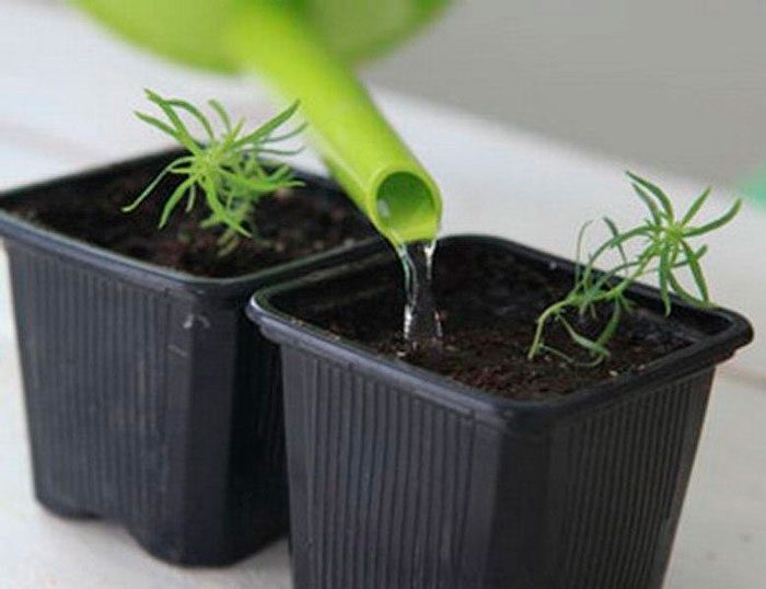 aby rozpocząć, zwilż powierzchnię mieszanki gleby w pudełku z rozpylaczem, a następnie przejdź do siewu, a nasiona należy równomiernie rozprowadzić. Nie są zakopane ani posypane mieszanką gleby z góry, ale tylko nieznacznie wciśnięte w podłoże, używając do tego równej deski. Przenieś uprawy do oświetlonego miejsca, a optymalna temperatura powietrza powinna wynosić od 18 do 20 stopni.