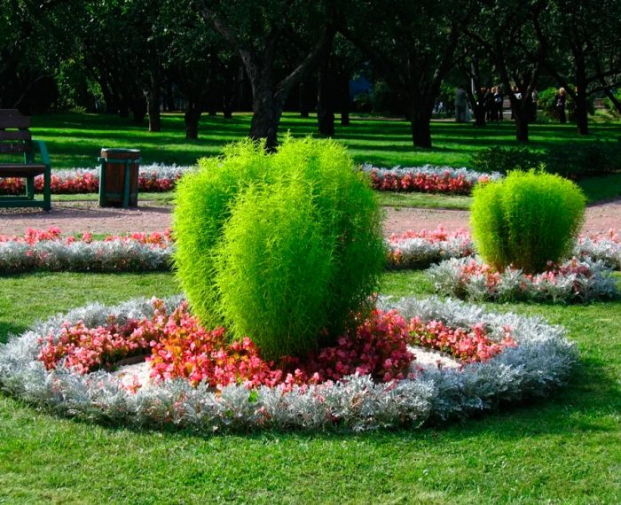 Kochia jest dość szeroko stosowana w projektowaniu krajobrazu. Na przykład samotne krzewy sadzi się na kwietniku i nadaje im skomplikowany kształt. Możesz sadzić kilka krzewów jednocześnie i tworzyć z nich cały zespół. Możesz również sadzić w pobliżu cochii o różnych odcieniach liści, co również będzie wyglądać dość imponująco. Niewymiarowe odmiany służą do dekoracji ścieżek ogrodowych lub trawnika.