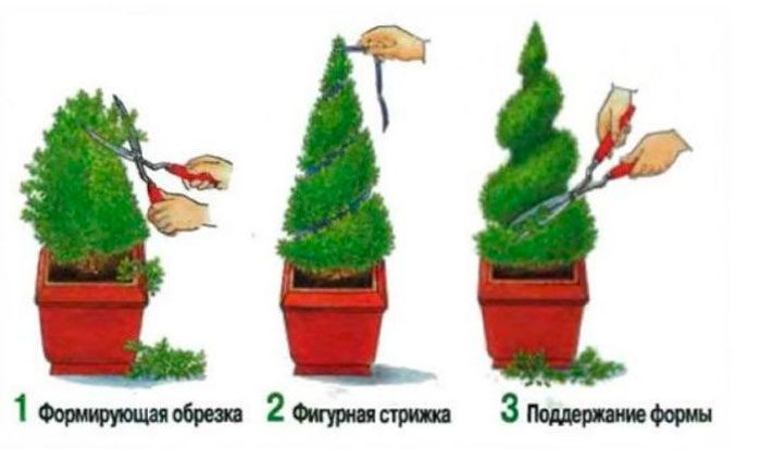 taki krzew ma bardzo gęstą koronę, która jest również jednorodna. Dlatego krzak można nadać prawie dowolny kształt. Na przykład koronę można nadać kształt geometrycznej figury, a jeśli chcesz, możesz wykonać złożoną rzeźbę ogrodową z krzaka. Łodygi charakteryzują się szybkim wzrostem, w związku z tym przycinanie można wykonywać dość często (1 lub 2 razy w ciągu 4 tygodni).