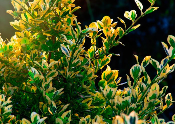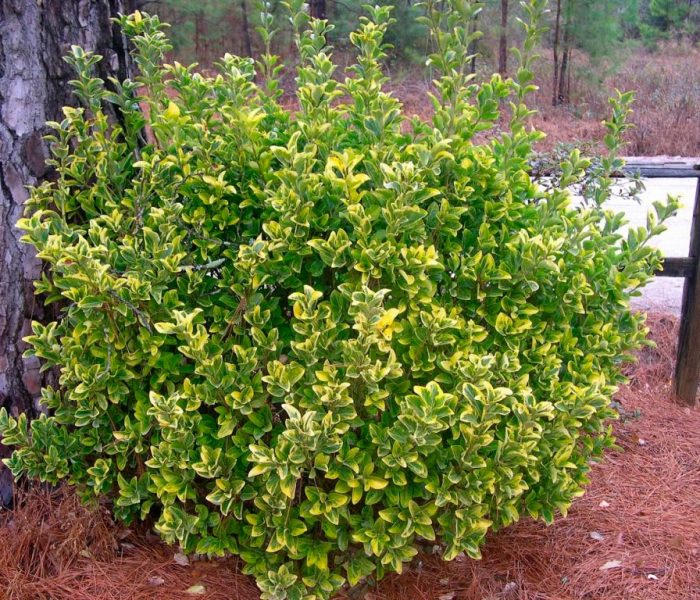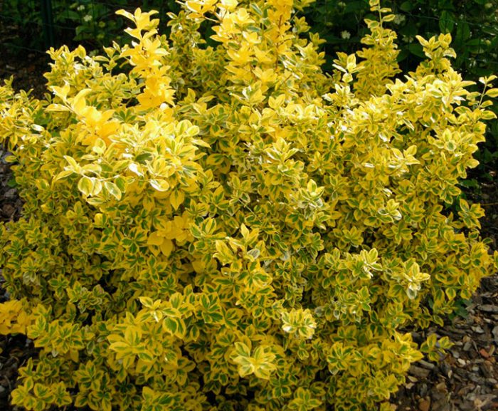 - Emerald Gold . Krzew ten charakteryzuje się bardzo powolnym wzrostem, nie przekracza 50 cm wysokości, ale może dorastać do 150 cm szerokości, Długość jasnożółtych pstrokatych płyt liściowych wynosi około 50 mm, na ich krawędzi znajdują się kreski i plamki żółtego koloru, które są rozmieszczone nieregularnie. Jesienią liście zmieniają kolor na czerwony.