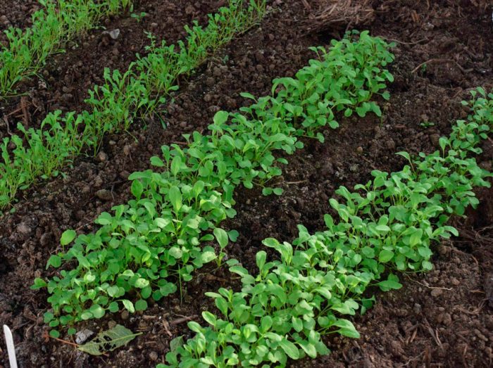siew materiału siewnego odbywa się w rowkach, których głębokość nie powinna być większa niż 0,5–1 centymetra, podczas gdy odległość między rzędami powinna wynosić od 10 do 20 centymetrów. Sadzonki rzeżuchy są w stanie tolerować spadek temperatury do minus 5 stopni, więc nie trzeba się martwić, że zamarzną.