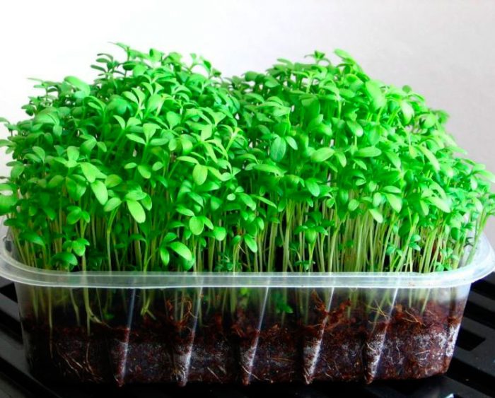 aby uprawiać tę roślinę w domu, musisz wybrać pojemnik, którego wysokość powinna wynosić 8-10 centymetrów. Wysiew nasion można przeprowadzić w przygotowanej mieszance gleby lub są one równomiernie rozmieszczone na powierzchni wilgotnej wełny, bibuły filtracyjnej lub bibuły. Są mieszkańcy lata, którzy uprawiają rzeżuchę w jednej dużej doniczce obok innych warzyw i ziół. Kręcone odmiany sałaty wyglądają bardzo atrakcyjnie w takich mieszanych nasadzeniach.