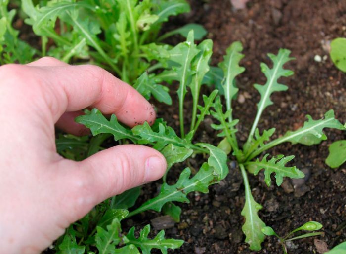 uprawiaj rukolę na otwartym terenie w taki sam sposób jak sałata. Aby to zrobić, zapewnia terminowe podlewanie, pielenie, a także rozluźnienie powierzchni gleby w nawach i wokół krzewów. Jeśli nasadzenia są zbyt gęste, należy je przerzedzić, w przeciwnym razie charakterystyczny zapach i smak liści staje się mniej wyraźny. Należy pamiętać, że w miesiącach letnich podczas długiego, suchego, dusznego okresu krzewy mogą zacząć kwitnąć, co ma bardzo negatywny wpływ na smak liści.