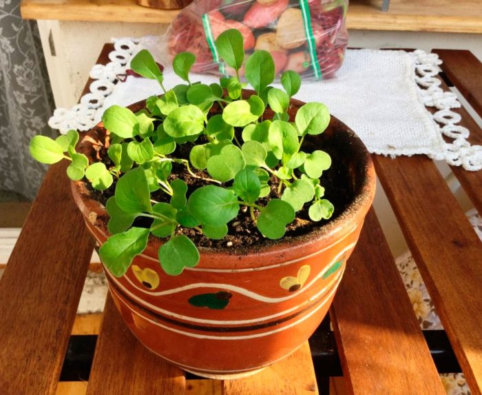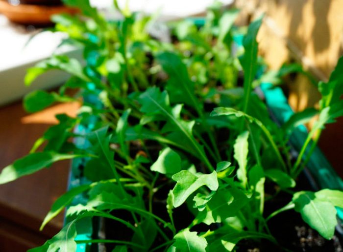 do siewu rukoli możesz użyć pojemników lub szuflad, ale jeśli posadzisz ją w doniczce, nie tylko zachwyci Cię świeżymi zieleniami, ale także stanie się ozdobą każdego pomieszczenia. Weź pojemnik, na dnie którego znajdują się otwory do drenażu, połóż warstwę kamyków, kawałków cegły lub ekspandowanej gliny o grubości 20-30 mm na jego dnie, a następnie pojemnik jest wypełniony zwilżoną mieszanką gleby, jego powierzchnia jest wyrównana i lekko zagęszczona, a następnie wysiew nasion (tak jak podczas siewu na sadzonki).