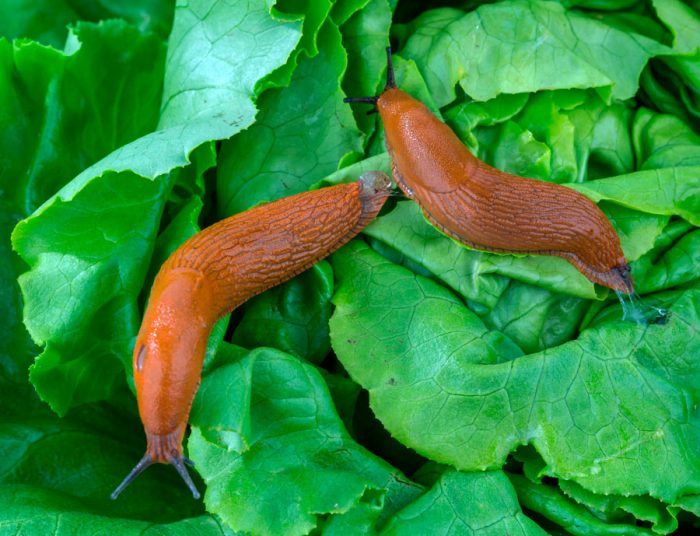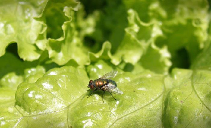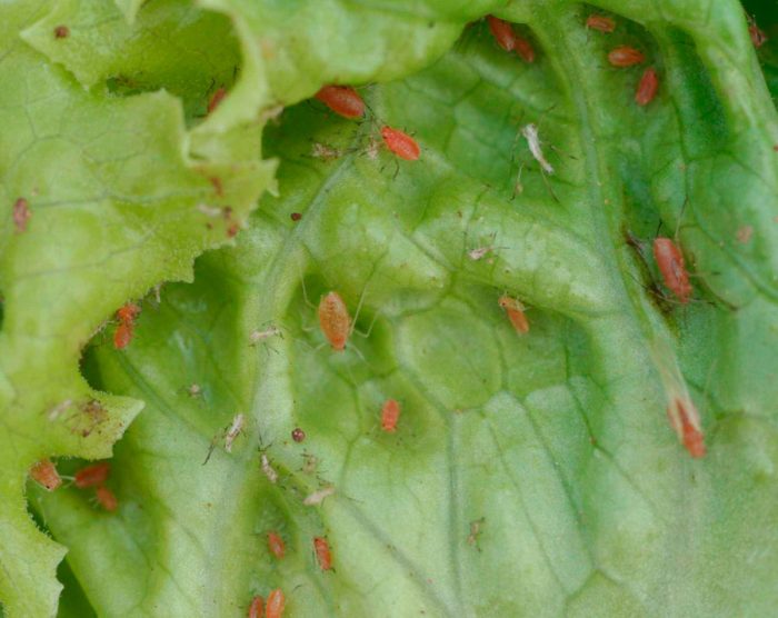 - szkodliwe owady . Muchy sałatkowe, mszyce sałatkowe, klacze z białymi paskami i ślimaki.