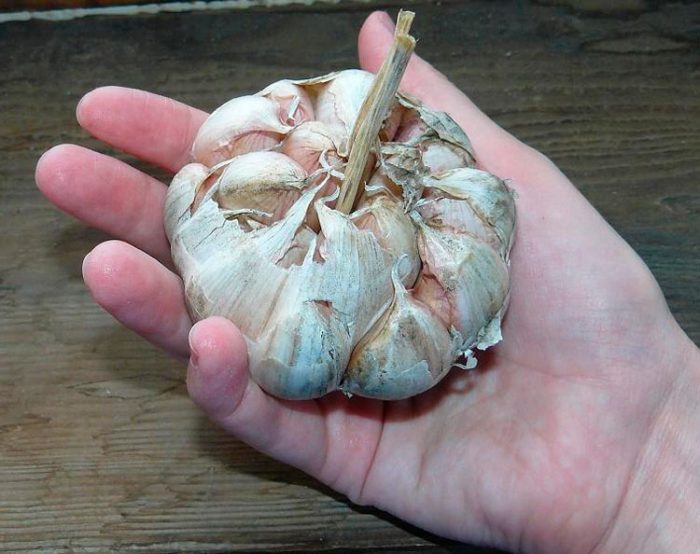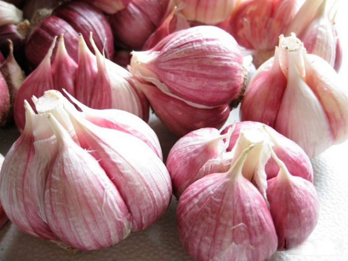 - Flavor . Ta francuska odmiana o średnim okresie dojrzewania jest szeroko rozpowszechniona w Europie Zachodniej i ma średni ostry smak. Żarówki ważą średnio około 80 gramów i pokrywają błyszczące łuski o różowawym kolorze. Jedna głowa zawiera 15-20 ząbków ułożonych w 2 rzędy, są małe i pomalowane w pastelowo-kremowym odcieniu. Jeśli taki czosnek jest prawidłowo przechowywany, zostanie zachowany do nowej uprawy.