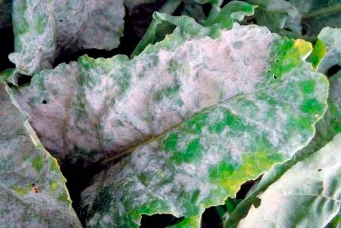 na liściach krzewu dotkniętego mączniakiem prawdziwym tworzy się luźna biaława powłoka, w miarę rozwoju choroby zagęszcza się i zmienia kolor na brązowy. Pierwsze oznaki uszkodzenia rośliny przez tę chorobę można znaleźć na początku okresu letniego. W rezultacie w dotkniętych obszarach krzewu obserwuje się zatrzymanie wzrostu, czernienie i śmierć chorych części, jajniki nie powstają na kwiatostanach. Taki rabarbar traci swoją odporność na mróz. Aby pozbyć się tej choroby, musisz użyć tych samych metod i leków, co w walce z ramulariozą. Biofungicydy, takie jak: Gamair, Alirin-B, Planriz itp., wykazują największą skuteczność w zwalczaniu takiej choroby.