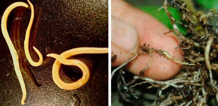 nicienie cebuli, które są mikroskopijnymi robakami, żyją w ogonkach, liściach i pędach tej rośliny. W wyniku ich aktywności życiowej tkanki rabarbaru miękną i pęcznieją, co prowadzi do śmierci krzewu. Do tej pory nie ma skutecznych środków zwalczania takiego szkodnika, w związku z tym dotknięte rośliny należy wykopać i zniszczyć tak szybko, jak to możliwe, a na obszarze, na którym rosły, nie można niczego uprawiać przez co najmniej kilka lat.
