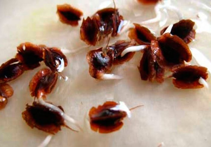 przygotowanie nasion powinno odbywać się cztery dni przed dniem siewu. Aby to zrobić, wlewa się je wodą o temperaturze pokojowej, gdzie pęcznieją przez 10 godzin.następnie zanurza się je w roztworze manganu potasu o różowym kolorze w celu dezynfekcji na 1 godzinę. Następnie materiał siewny jest przenoszony na zwilżoną tkankę i pozostaje tylko poczekać, aż nasiona się zakleją.